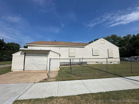 Great opportunity. This home has good square footage, on a large corner lot with a fully fenced yard and attached garage. This area has a lot of new build and renovation and is located close to Downtown Tulsa arts district, restaurants and festivities. Sold AS IS