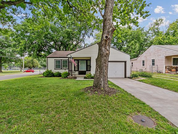 Wonderful move-in ready home in the town of Mulvane! This 3 bedroom, 1 bath home has updates throughout! Spacious living room offers lots of natural light and flows directly to the kitchen/dining combo. Kitchen features stainless steel appliances, trendy cabinets, and access to the mudroom. Bedrooms all feature custom window treatments that stay! Bathroom showcases modernized stand-in tile shower with dual shower valves, marble vanity top, and vinyl flooring. The exterior of the home is fully fenced and offers plenty of shade from mature trees. Sellers have put money where it matters with a new PEX sewer line and as well as a new HVAC! This corner lot home features great amenities right across the street such as pickle ball courts, sand volleyball and a skate park. Don't miss the opportunity to own this charming home!