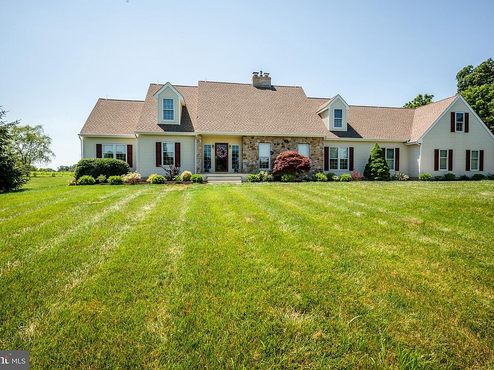 There are not enough superlatives to describe this extraordinary one-of-a-kind home! The possibilities are endless... In-law Suite, multi-generational living, it's zoned for up to four horses and small livestock & has the potential for subdivision, Just,17 years old, this magnificent home is situated on eight beautifully landscaped acres and is surrounded by property that has been dedicated to land conservation. This custom home features a multitude of brag-worthy features, including hardwood floors throughout, newer window treatments on the main level, an upgraded gourmet kitchen, a first-floor primary suite, a stunning brand-new spa-like primary bath with vaulted ceiling and circle top window, an unbelievable finished lower level, and so much more…including a large wine cellar with tasting area! A fusion of classic elegance and country charm, this property is sure to impress even the most discerning buyer. This Cape Cod home is reached via its graceful & meandering tree-lined drive. The winding paver walkway leads you to the front entrance. A welcoming foyer greets you as you begin to appreciate the breathtaking views that are evident everywhere. The formal living room has beautiful hardwood floors and one of the home’s wood-burning fireplaces. The formal dining room also has hardwood floors & gorgeous views. The heart of this home is the astonishing gourmet kitchen that boasts granite counters, hardwood floors, stainless steel appliances (including a new KitchenAid double oven, a new KitchenAid convection microwave, a new KitchenAid dishwasher), and a new kitchen faucet. A Jenn-Air gas cook top plus a large island and breakfast bar complete this great space! Relax in front of the family room's wood-burning fireplace and enjoy the natural light that pours in through the large windows. The sliding glass door opens to an expansive composite deck. There’s also a newer Hunter Douglas ceiling fan and hardwood floors. The serene first floor primary suite features hardwood floors, a sizeable walk-in closet, large windows, and a ceiling fan. The brand-new primary bath is stunning in every way and includes a free-standing soaking tub, an oversized frameless glass shower enclosure beautiful Carrara porcelain walls and flooring, the vanity features a quartz countertop. The accents include wall sconces, an oversized window with circle top and beautiful lighting and fixtures. The main level also offers a handsome den/study with a propane fireplace and a newer Hunter Douglas ceiling fan. Directly off the kitchen is a large tiled mudroom with a desk area, built-in cabinetry, a double closet, and a door to the three-car garage. The main level also includes a laundry room with utility sink, a separate garage entrance, and a second set of stairs to the finished lower level. The upper level also boasts a second potential primary suite, two additional bedrooms, a private office, and a full bath. As if the main and upper levels didn’t have enough to offer, you will be amazed at the amenities in the finished lower level, including a custom-built 269 bottle wine cellar with tasting area; a full bar area with extra storage and a sink; media and recreation areas; and a sixth bedroom with easy access to a full bath. This is a home within a home! The eight park-like acres are professionally landscaped and meticulously manicured! Enjoy panoramic views all year long from the large composite Trex deck. In addition to the home’s three-car garage, there is a detached garage with electricity, a new door and new interior sheetrock, and there is also a shed. This property has been painstakingly maintained and pride of ownership is evident throughout. Attention has been given to every detail, both inside and out (see Buyer and Agent brochures for more specifics). Close to Fair Hill, it provides a perfect, private sanctuary while its central location offers easy access to nearby PA, DE & MD.