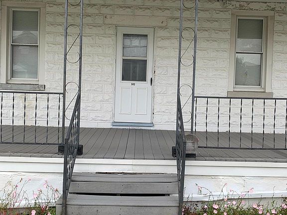 Detached & spacious home, foyer with nostalgic staircase to upper level. Home was previously set up with an apartment upstairs. Kitchen has been removed but plumbing is still in the walls. Private entrance through foyer to 1st and 2nd floors. Very large room sizes, transom windows between rooms, Hardwood floors visible in most rooms, HW likely under carpet and vinyl, Walk in closets in some bedrooms, Short hallway off kitchen offers closet space and leads to bathroom and bonus room which could be Breakfast Room, Den/Office, Playroom or Craft/Sewing Room. House has some paneled walls, wallpaper, plaster and drywall. Radiant heat with radiators in most rooms. Most replacement double hung windows, some with storms. All personal property, blinds and curtains included. Front and back storm doors, interior doors are historic 5 panel. Basement is unfinished but has double cast iron laundry sink and washer connections. An exterior door to side is covered outside. Rear deck is 8' x 6' and leads to sprawling back yard. Left side lot boundaries are believed to be marked by old chain link fence posts, driveway on left side is near property line. Right side of house has another long driveway with a slab at the rear that used to be the base for the garage before it was removed. On the front is a 30' x 8' composite covered porch, perfect for watching the world go by. All personal property in home is to be included. This will be a great house once it's rehabbed and updated!