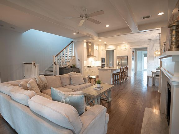 Back available at no fault of sellers! This beautifully upgraded Sandcastle model is ready for new owners.This dual master suite home is spacious, Situated in a finished part of the community and not even 2 years old. All of the upgrades from beamed ceilings, wood floors throughout, designer lighting, screened porch, outdoor shower, and garage! Kitchen features shaker style cabinets all the way to the ceiling with Carrera marble countertops, subway backsplash, and built in appliances including gas cooktop. Living room is comfy with gas fireplace with matching Carrera marble surround. The fun can overflow out the double back door to the screened porch overlooking the pond. Calming colors and private location in an active community. Large community pool and outdoor entertainment.