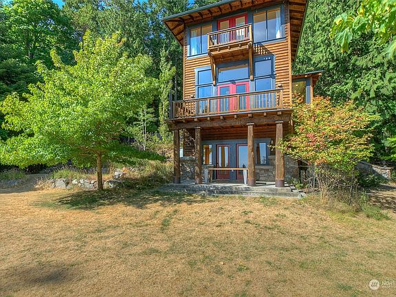 Magical private south-facing water view property with guest house. Desirable combination of 3 bed/2 ba. main house w/water views & 2 bed/1 ba. guest house w/studio, shop & work spaces. Situated on 5.32 ac. by the Orcas Landing, this enchanting property is nestled between forests & meadows, offering end-of-the road privacy. Spend summers reading on your pier by the 20’ deep swimming pond or in the large fenced garden nurturing the fruit trees, flowers & vegetables. Two pond-side writing/nesting studios for additional getaway space. Barn/shop w/loft for projects/storage. Carport w/built-in storage, stone pathways, hot tub, fir floors, trim & cabinets, outdoor pizza oven. Active Vacation rental permit, excellent well, 2 septic systems.