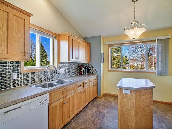 Excellent 4 bedroom/2 bath affordable family home in a great neighborhood. Not a cookie cutter style. Unique floor plan. Vaulted ceilings, large kitchen with a center island. You'll love the lower level family which offers a wet bar & wired surround sound.Lower level bath has in-floor heat. Large yard with in-ground sprinkler system, established trees & a firepit area. Huge deck overlooks a pond. Hail damage to roof & some exterior. New roof & exterior repairs in process. Quick close possible.