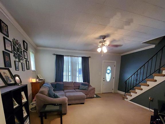 Lovely semi-detached home ready for a move-in ready buyer! Beautiful front porch and rear covered deck with vinyl railings. Overlooks fenced yard where you can enjoy the lovely plantings. Inviting living room with plenty of natural light from 3 windows, open to formal dining room with chair rail and chandelier. Adjacent is kitchen that is updated with all the appliances remaining including gas stove, fridge and dishwasher and has pantry & peninsula. Nice view from rear deck just off the kitchen. Efficient gas heat, gas stove and gas hot water. Finished lower level rec room with a powder room and laundry/utility room with walk out to beautiful fenced yard. The second level has 2 private bedrooms, full bath and a small room that could be office/nursery or walk-in closet. The third level has a finished 3rd bedroom with heat that will need new carpeting as it was used as a storage area. This could be a large bedroom with 2 closets. Ceiling fans in almost every room and window a/c. Security system. 1 year home warranty to give buyer peace of mind. Great home and value.