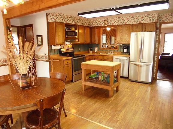 Ranch home in the Village of Rochester with frontage on the Fox River. Large kitchen with an attached dinette. Living room has sliding doors to a private deck. Perfect outdoor dining while watching the fish jump! Huge Master! Main floor mud room/laundry. Finished Rec Room with wet bar, pool table and door to your hot tub. Lower level man cave or extra garage. All stainless steel appliances included.