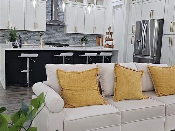 Cozy fireplaceSoaring ceilingsAiry open floor planSpacious covered deckSun-filled family roomSleek quartz waterfall islandPremium stainless-steel appliances