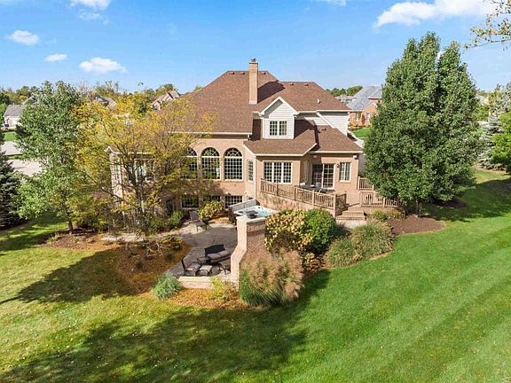 Spectacular 5Bd brick home in the highly desirable Chestnut Hills. This 5500 sq ft home showcases a fabulous outdoor entertaining area (maintenance free deck, open patio with brick fireplace) and fantastic view of golf course (Hole #15). Spacious and light-filled living with floor to ceiling brick gas fireplace, which is shared with the kitchen. Formal dining, den and open foyer are spacious and feature beautiful hardwood flooring. Gorgeous eat-in kitchen (white cabinets, black granite and stainless steel appliances) is the perfect gathering spot for family and friends. Main floor master suite includes trey ceiling, garden/jet tub, glass/tile shower and two walk-in closets. Upstairs features three spacious bedrooms, one has a private full bath and the other two share a Jack and Jill bathroom. Finished basement (2100 sq ft) with full bath, large rec room with full size bar, game area and bedroom #5. Three car garage features an extra tall third bay that can be used for boat storage. On trend light fixtures throughout the home, as well as, new high efficiency furnace & AC (2018) and a newer roof (2013).