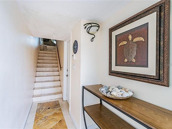 This Beauty will not last!!Remarkable 2,025 Sf. Waterfront Town home in Paradise Village of Treasure Island! This end unit has so much to offer from beautiful waterfront views, playful dolphins and Manatees, possibility of a boat slip. There is a waiting list for first come first serve( they rent for as low as $90 a month, fee includes water and electric but no boat lift) & the best Sunsets! Spacious 2 car garage as you enter the front door. Solid wood and travertine natural stone floors thru out. Open concept on the first floor living, dining , the kitchen includes solid wood cabinets, granite counter tops, walk in pantry, 2 dish washers, built-in oven and microwave, glass top stove, new refrigerator. owner did not spare expenses when replacing all new hurricane impact window & sliding doors. Grand Master Suite and Bathroom on the second floor (it was originally a Master bedroom and a smaller guest bedroom) with high ceilings, walk-in closet, laundry closet, sitting area and work-out corner. Come live the Florida lifestyle at it's finest!