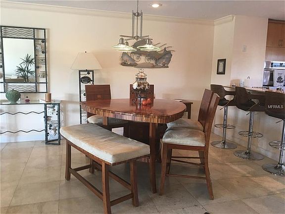 PRICE REDUCED. Live in Paradise! Watch dolphin and manatee in your backyard! Relax to beautiful sunsets on every level. This end unit is one of a kind and perfect for an entertaining life style with its spacious and open floor plan and impeccable updates. The ground floor has a 2-car garage and a large bonus suite and full bath that opens to a private patio. This bedroom is perfect for quests or a quiet get away. Relax in the hammock just steps away from the private boat dock and gorgeous water views. The first level is one huge room updated with travertine floors, state of the art kitchen and appliances. The solid wood cabinets are complimented by granite counter tops. You will love the large breakfast island as well as the custom made pantry. There is a powder room convenient for guest. Large sliding glass doors open to the deck, overlooking the deep water canal and intracoastal waterway. The top level is one large open suite that offers many options for functional living. There is an office area, a storage closet with washer/dryer, another huge walk-in closet and a separate sitting area that opens to yet another deck that overlooks the waterways. The master bath is custom designed with a walk in shower and a Jacuzzi tub. The unit is selling furnished. This community is pet friendly, has two pools and a fishing dock. Boat slips can be rented for $72.00 a month and include water and electric. This complex is close to recreational amenities, shopping and the Gulf Beaches.