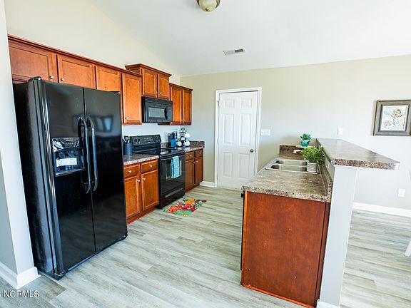 Cooking enthusiasts will rejoice in the well-equipped kitchen, showcasing sleek countertops, modern appliances, and a convenient breakfast bar. Whip up culinary delights while mingling with loved ones or simply delight in the serene view of your expansive backyard oasis.