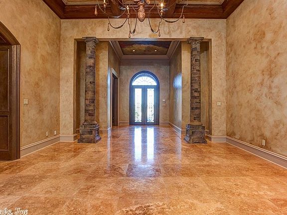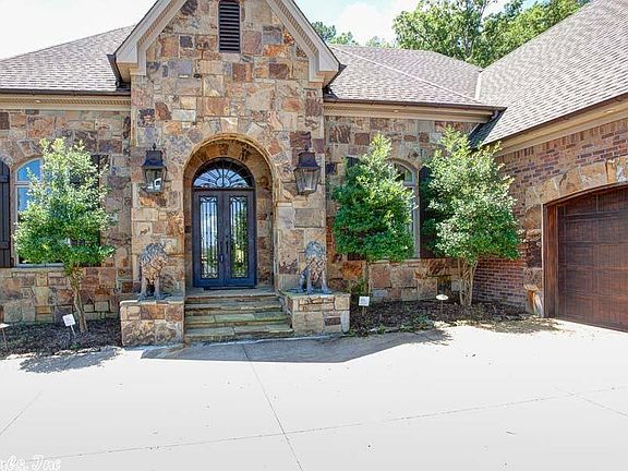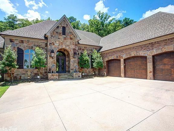 Stately European architecture in newer gated Hickory Creek. Quiet cul-de-sac, private and peaceful. Native AR stone exterior w/stone wall water feature in tranquil backyard. Open living lives like a one level- 3 living areas. Versatile floor plan w/18'x30' media room, additional bedroom/exercise. Wood paneled study, large master suite w/fireplace and sitting area. Complete chef's kitchen, plantation shutters, coiffered ceiling and whole home generator. New roof 2014. Unbelievable value. Don Roberts School.