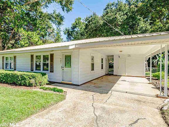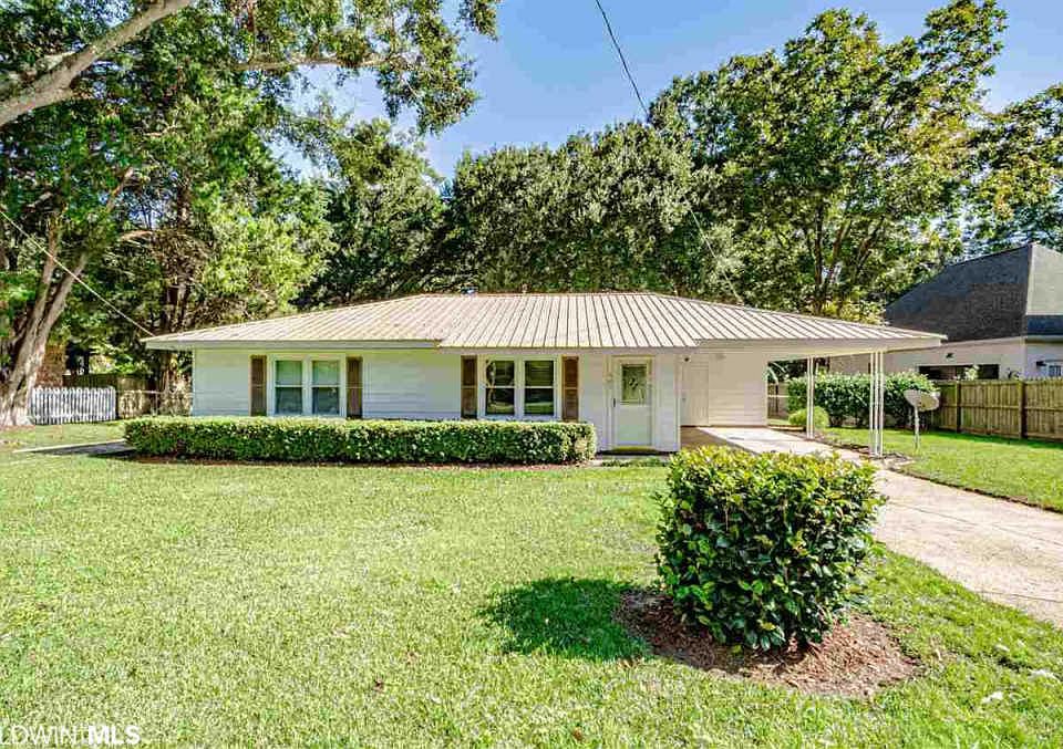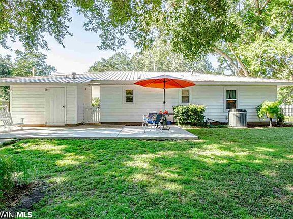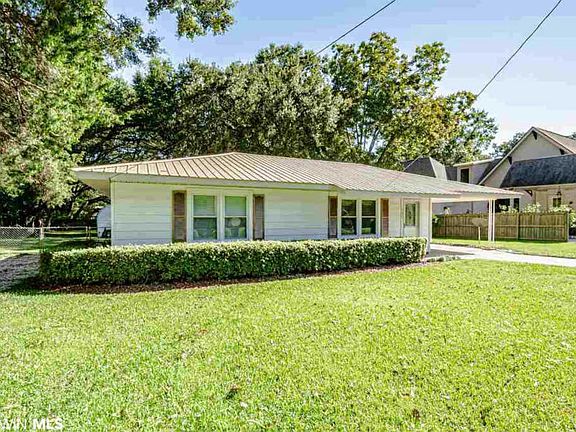 Charming cottage on a sensational lot at edge of Fruit & Nut near downtown Fairhope. Nearly half an acre level lot features gorgeous oak trees, storage shed, and quonset building. Plenty of room for your boat, classic car, or RV! The two bedroom 1 bath cottage has metal roof replaced in 2014, tankless water heater, windows replaced in 2010, smooth ceilings, and aluminum siding. Master bedroom floor new in 2018, and dishwasher in 2016. Bath is updated including walk-in tub. Seperate utility in carport with full laundry hookups. Private entrance in 2nd bedroom from side drive. So much potential; just enjoy the privacy and space of the beautiful yard, or add onto the house to personalize. Great location, just 15 minute walk or easy golf cart drive to Bay or Downtown.