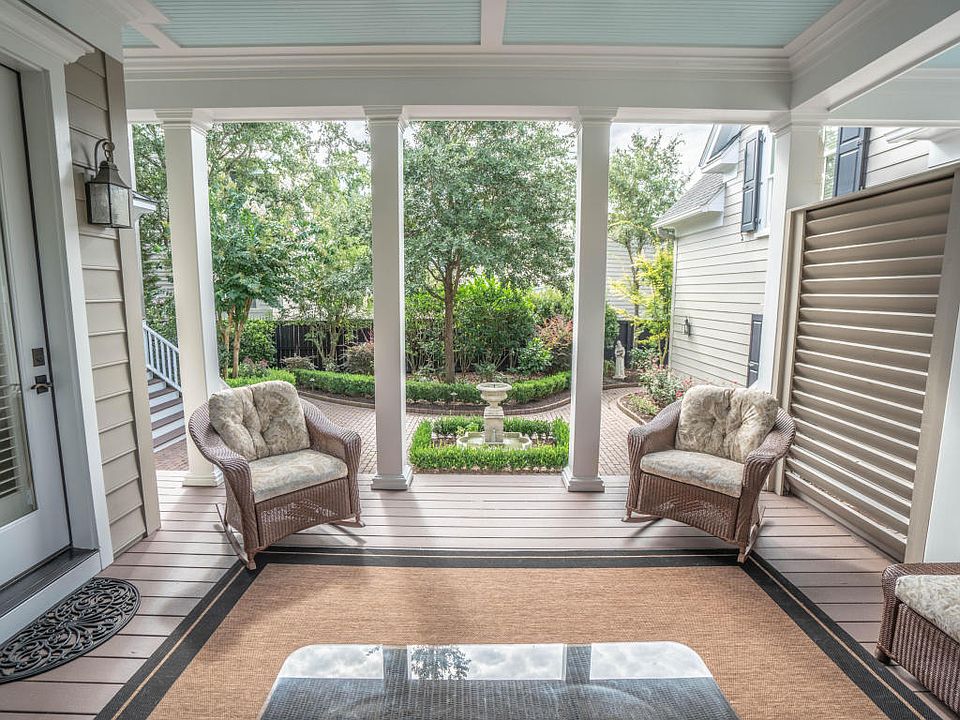 Perfectly situated on Daniel Island's ''Parkside'' this modern Charleston single-style home within walking distance of the DI Clubhouse, golf, pools & tennis courts. Features an enclosed courtyard with a wrought iron gate, double porches, & gas lanterns reminiscent of historic downtown properties. Main house is 4350 SF with 5 BR's & 4.5 BA's plus carriage house with 1 BR/1 BA, kitchen & laundry is ideally suited as office or apartment. Luxury kitchen with DCS gas range, Thermadore refrigerator, Dacor warming drawer, instant hot water faucet, honed granite plus a keeping room with gas fireplace. Downstairs master suite has its own laundry room. 2nd floor has 3 guest suites, a study, family room, billiards room & laundry. 3rd level includes a media room, a bonus room & walk-in attic storage. Quality details, high-end finishes & a thoughtful design enable this home to live large yet feel welcoming & cozy at the same time. Enjoy morning coffee and evening cocktails on the private covered portico overlooking the courtyard fountain & garden area. One of the owner's favorite features of the courtyard design is the ability to 'lock it and leave it' whenever they are ready to travel. Notable interior details include the custom stained glass front door, the family room's coffered ceilings, shiplap and beadboard in the keeping room, and Brazilian chestnut floors throughout the first floor and in the sitting and activity rooms on the second floor. The family room fireplace is wood burning and has built-in shelving on both sides. The current owners provide an exceptional level of home care and maintenance. Some of the behind the scenes extras include the encapsulated crawl space with dehumidification system, foam insulation, whole house surge protectors, a central vac system, and two surround sound systems. Buyer pays a one time neighborhood enhancement fee of .5% x sales price to Daniel Island Community Fund at closing. Daniel Island Resale Addendum and Community Fund Disclosure will be required on offer to purchase. Daniel Island Resale Addendum, Property Disclosure, Community Fund Disclosure are attached. Ask agent about incentive with using preferred lender!