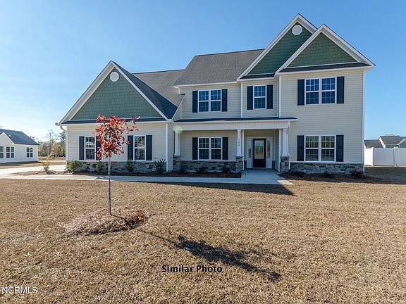 Welcome to the highly desired & popular community of Onslow Bay. Brand new construction built by Onslow County's most trusted & preferred builder, featured in Builder 100/ Top 200 Builders in the country. Onslow Bay is a hot spot, 3 miles to MCB Camp Lejeune's Piney Green gate, 14 miles to New River Air Station & minutes to area schools, shopping & dining. This beautiful neighborhood is sure to impress, complete with a clubhouse area & community pool. Welcome to the Bailey floorplan. 4 bedrooms, 3.5 bathrooms, approx. 3554 heated square feet. Very traditional classic curb appeal with an awesome front porch, stone or brick exterior front accents, modest landscape, textbook picture perfect. Formal living room and formal dining room off of the foyer. Main level is open and spacious/ Beautiful kitchen space includes flat panel, staggered cabinets, an island and a cozy 14x11 breakfast room. Open family room is 21x18 featuring a ceiling fan and a fireplace with custom mantel. Main level laundry room. Bedrooms 2, 3 & 4 all have actual walk-in closets! Bedrooms 3 & 4 share a full bath in the hallway. The 14x12 loft makes for a great sitting area or home office space. Additional full bath in hallway. Enjoy Summer evenings on the Covered back porch. Great place to grill or hang out with friends. 2-car garage. Call today. NOTE: Floor plan renderings are similar and solely representational. Measurements, elevations, and specs may vary in final construction. All selections have been ordered, no selections or changes can be made. Call L/A to verify.