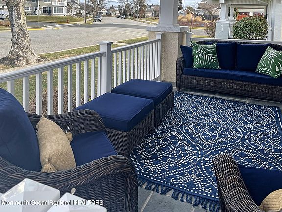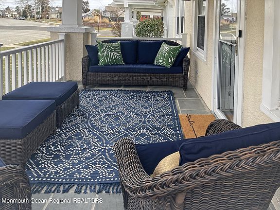 Charming from the moment you enter! Craftsman beach house offers two bdrms, one bath & welcoming covered front porch w/beautiful new awnings! Living rm w/stone WB fireplace. Mounted TV included. Gorgeous updated eat in kitchen w/custom cabinetry, new Bertazzoni stainless steel appliances, glass backsplash, stone counters & undermount cabinet lighting. Beautiful full bath out of a magazine w/custom stained glass inlaid window & built in linen closet. Sliders from master bedroom to private Trex deck. Custom window treatments & recessed lights throughout. Unfinished basement w/laundry and detached garage. Beautiful landscaping w/underground sprinklers. Enjoy as a summer retreat or year round living! The choice is yours! Shops and fine dining at your fingertips! Welcome to the Jersey Shore!