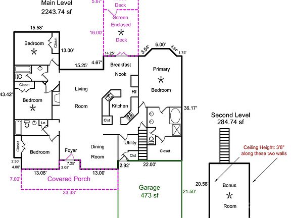 - Patio & porch: Deck, Rear Porch, Screened