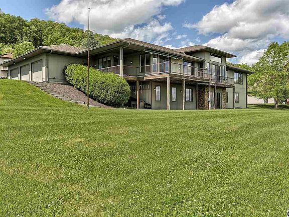 Stunning ranch home on 1 acre southern exposure cul-de-sac lot w/priceless views of river, city skyline & more. This home has brilliant architectural style with an open floor plan concept, neutral color tones, pristine hardwood floors. 4 bdrms in all. Master bdrm w/dream closet & full bath on main level plus 1 guest bedroom & main bath. Lower level has theater/game room w/wet bar, exercise room, 2 bdrms & full bath. Large composite deck, dry stack stone w/cement fiber siding. 3 car garage. Simply Amazing!