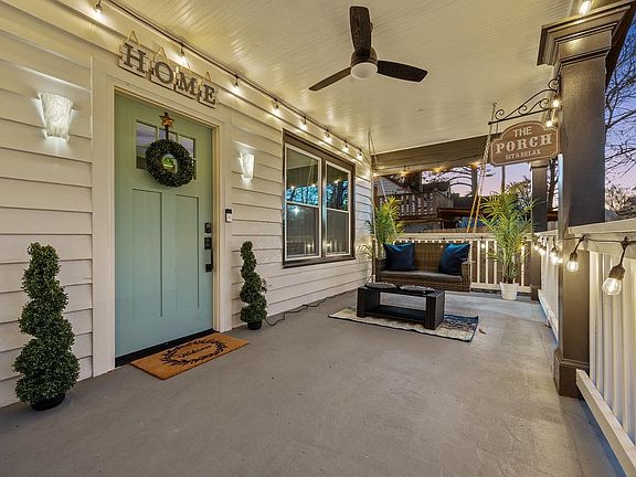 Enjoy your morning coffee or an evening cocktail on the front porch swing, or gather around the outdoor fireplace for cozy conversations under the stars. The backyard is a perfect spot for unwinding after a day of sightseeing.
