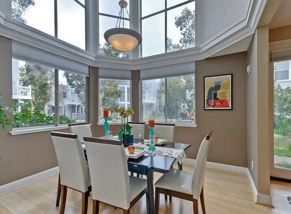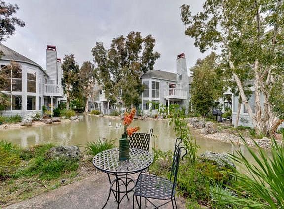 What a delightful place to call home! Views of the water from all main rooms. Vaulted ceilings, New Bamboo floors, all remodeled, bright and decorator paint colors. 2 car garage. Master bathroom with sep tub & shower & 2 sinks. Pool nearby! Private balcony. Upstairs laundry. Kitchen nook can be office area with adjacent 2 story, formal dining over looking the water. Double pane windows.