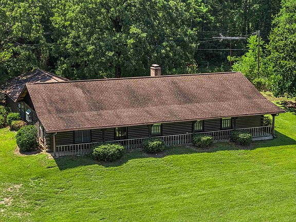 Embrace country living at its finest in this wonderful Satterwhite log home, a timeless haven nestled on 2.78 breathtakingly beautiful acres. Towering trees frame the property, creating a tranquil and secluded retreat with only the sounds of rustling leaves and birds singing. Perched just a short drive from the pulse of the city, this home blends rustic charm with effortless accessibility. Inside, the spacious family room is a warm retreat, its soaring vaulted ceilings drawing the eye upward while a grand wood burning fireplace crackles, casting a glow over gatherings with family and friends. Porches grace both the front and back, perfect for sunrise coffees or sunset toasts. A large workshop/outbuilding stands ready for any project, equipped with reliable power and a fresh water well. This fabulous home and land is country living at its best.