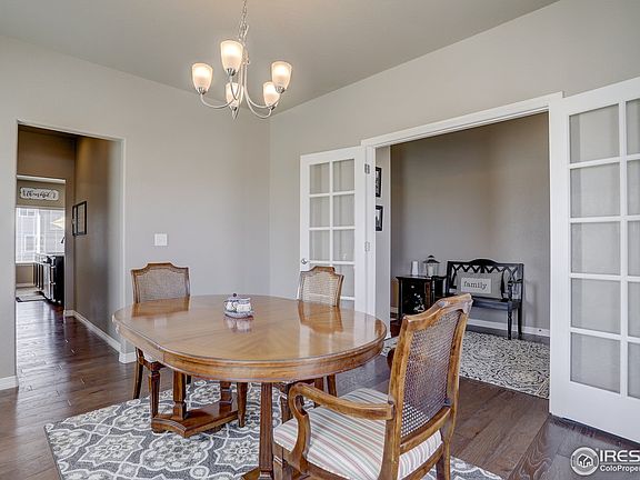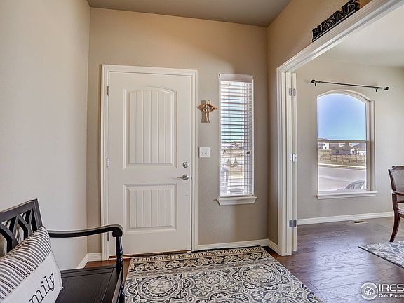 From the charming front porch to the back patio with beautiful mountain views, this is an amazing home! The stunning open floor plan with a pass-through butler's pantry makes this the perfect home for entertaining. The kitchen features a huge island, plentiful cabinets, gorgeous granite countertops and stainless appliances. Large windows and soaring ceilings flood this home with natural light. The large loft provides a bonus space for work or play. Spacious master retreat includes a double-sided fireplace shared with the luxury ensuite bath. Finished basement boasts a family room, a bedroom/study with a fireplace, a big under-stair storage area. plus an additional framed and pre-wired bathroom and fifth bedroom! Located on a coveted corner lot with plenty of outdoor living space and an open space buffer from your back yard neighbor. Easy walk to the neighborhood pool and Old Town Berthoud restaurants. Public records list year built as 2016 but home was completed in 2018.