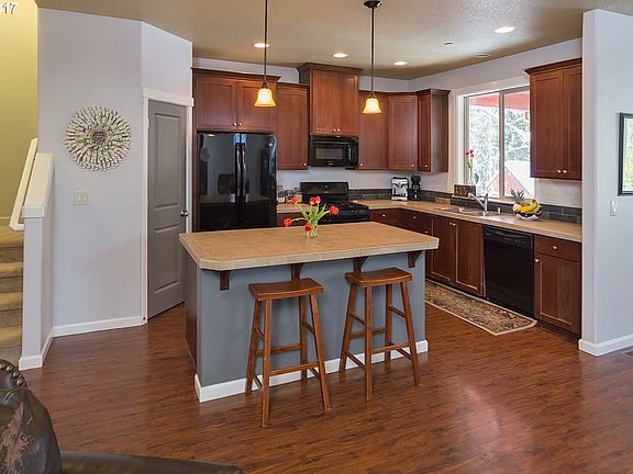 A rare gem! In Pioneer Canyon but no HOA fees! A private cul de sac of 3 homes bordered by 2 creeks, a pond, & walking trails! This immaculate home has wide entry,laminate floors throughout the lower level, great room floor plan w/gas f/p, high ceiling, designer light fixtures, 4 bedrooms up, master with vaulted ceiling, large bath w/walk in closet. Exterior has 400 sf deck, 2 sheds, RV parking, partially fenced. Very private backyard!
