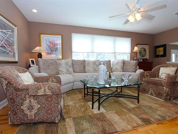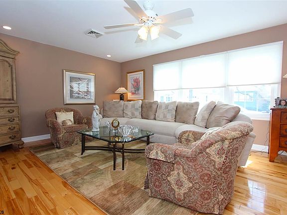 A must see! Immaculate year-round or summer home! Custom built-ins, gleaming HW flrs, cozy family rm w/recessed lights, formal dining & living rms, master bedrm w/double closets & master bath w/shower & new vanity, crown moldings, closets w/organizers, newer windows, pulldown attic & storage, central air, gas heat(5 yrs old), paver front porch w/retractable awning, covered rear patio & grass yard, sprinklers, enclosed outdoor shower, storage shed for beach chairs & bikes, 3-car prkg. No Sandy damage. Perfect as a second home at the shore or year-round home on this desirable, wide street within walking distance to the beach!
