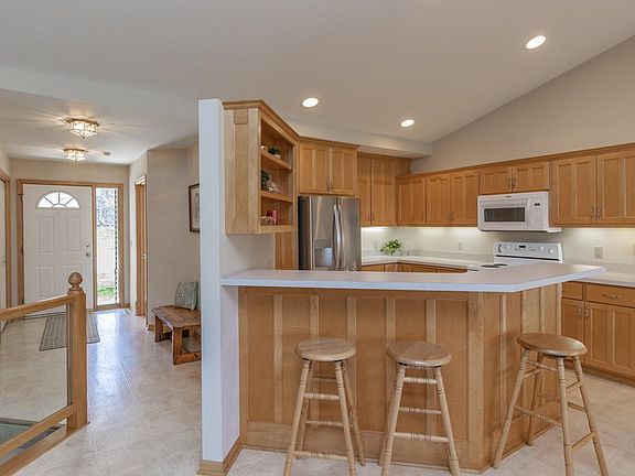 Wonderful opportunity to own a 1-level living twin home that also has a full mother-in-law/guest suite/apartment in the lower level! The main floor offers an open floor plan, including a spacious kitchen with maple cabinets and ample counter space. There's plenty of room to entertain guests in the living/dining area, and the vaulted ceilings make this space seem light and bright. This summer you'll be sure to enjoy the screened-in porch and patio out back. The primary suite has a walk-in closet and full bath. A 2nd bedroom and 1/2 bath complete this floor. Down the stairs is a family room, 3rd bedroom, 3/4 bath AND full kitchen and laundry. There are so many ways to use this space. It's the perfect set up for short or long term guests. With the larger garage and 18 x 16 unfinished mechanical room in the basement, you'll not lack for storage here. With its expansive green space and pretty views out back, this home has the comfort and lifestyle you want.