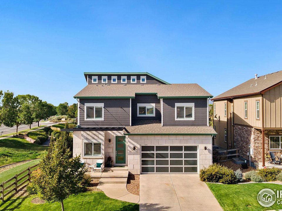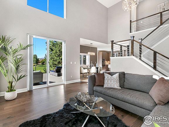 Finally! The inviting contemporary home you've been waiting for! This fully updated, move in ready modern home features a serene view of open space and mountains. This incredible home has abundant upgrades throughout: Tharp Euro Cabinets, Quartz Countertops, Wall Mount Fireplace, magnificent Light Fixtures, 8' Doors, High Ceilings, Plantation Shutters, SS Appliances and a Whole House Water Filtration System. Entertain on your expansive Composite Deck overlooking the open space and amazing mountain views. Your Backyard Oasis is complete with custom Privacy Screens, Firepit and Hot Tub. Main Floor Bedroom with French Doors is perfect for a Home Office. Huge Loft has a Built-in Desk for additional office or homework space. Owners Suite has a direct access Deck to take in a majestic mountain sunset. Unfinished Basement provides for storage or future expansion. HOA includes Community Pool, Exercise Area and Clubhouse. Close to Shopping, Schools and easy access to I-25 and all of NOCO. This home is a MUST SEE!