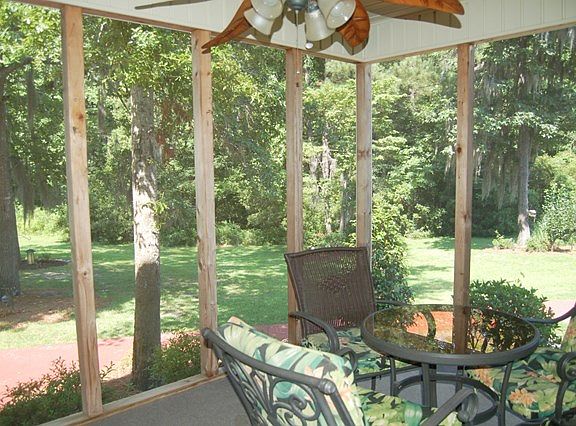 Brick home, open floor plan, hardwood flooring, granite counter tops, appliances, vaulted ceilings, master bedroom has a large walk in closet, guest room has private bath access, screened porch overlooking wooded area and spacious two car garage. Gated community offers daily activities, storage, pool, tennis and pickleball courts, golf, fishing, and miles of private roads for biking and walking.