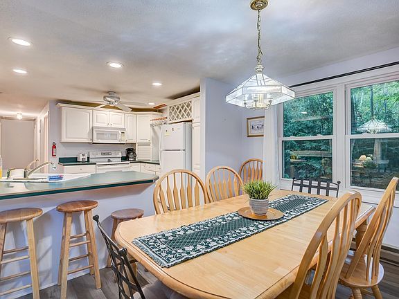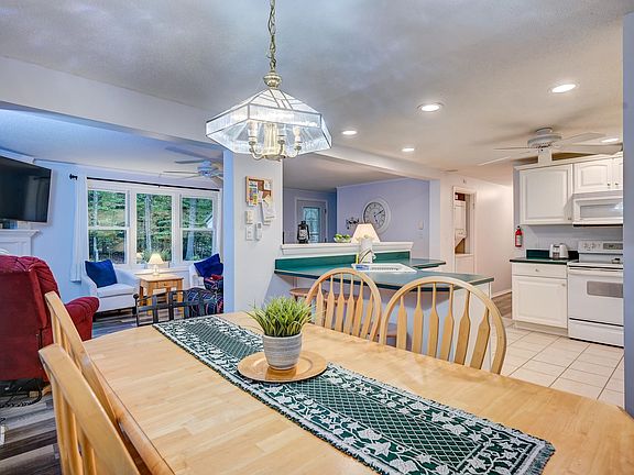 Seasonal Rental available 11/19-6/19. A dog friendly, this 3 bedroom, 2 bath single-level home, is ideally located less than one mile from Cranmore Mountain Resort and only two miles from the charming village of North Conway. Nestled among New Hampshire's beautiful pines, this home sits on a quiet lot with private off-street parking without pedestrians and auto traffic.. Thoughtfully designed for easy one-floor easy living, the home comes fully furnished including linens, towels, washer and dryer. It features a spacious primary suite with a king bed, a second bedroom with an additional king, and a third bedroom with one double bed and a twin, perfect for family and guests. The open layout creates a natural flow between the living, dining, and kitchen areas, enhanced by abundant natural light and a warm, cozy propane fireplace serves as the centerpiece of the living room, with a 60 inch tv above to enjoy from the open space. A mini-split provides additional heating. The well-appointed kitchen is designed for both casual meals and entertaining, with modern amenities and plenty of counter space. Smart TVs in each bedroom for convenience and entertainment. Enjoy outdoor living with an easy-access ramp and covered porch. The detached garage is ideal for parking, as well as storage. With skiing, hiking, shopping, and dining all within easy reach, call today to view this exceptional seasonal rental.