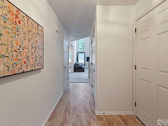 Spacious townhome in Monmouth Junction features 2 story living room, formal dining room, eat-in-kitchen with sliding glass door to patio and fenced-in yard, and powder room downstairs. Upstairs is 2 bedrooms with 2 baths and laundry room, both baths recently remodeled. Master bedroom has balcony. Great location in a nice quiet community with 1 car garage.