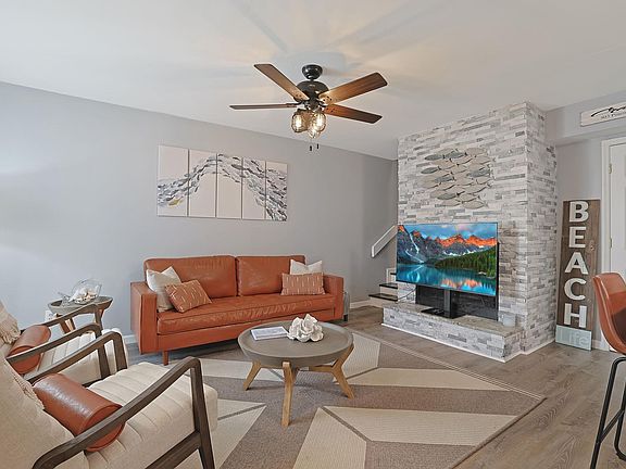 Introducing this memorable 2 bedroom, 1.5 bath true townhome located in the delightful Brandywine North complex of the very popular Pine Lake Estates community. This vibrant townhome has been totally modernized, featuring wood look LVP flooring, upgraded ceilings fans, energy efficient windows, HVAC 2024, smooth flat ceilings, a main level guest powder room, a nice sized living/dining room combo with a cozy fireplace, and the home showcases a relaxing private court yard. The chef friendly kitchen is equipped with a stainless steel appliance package, quartz counter tops, ample cabinet space, a practical pantry, and a breakfast bar. As you venture up to the second level you will find the primary bedroom that offers vaulted shiplap ceiling with a fan, a double bi-fold door closet, a sliding glass door opening up to the second level balcony, a separate bath that includes a single sink vanity, comfort station, and a deluxe shower. The third level hosts a large second bedroom with a vaulted shiplap ceiling with a fan, a skylight, along with a closet space. This townhome affords you easy access to the beach and golfing along with all of the other activities and happenings in Myrtle Beach including fun eateries, award winning off-Broadway shows, public fishing piers, and intriguing shopping adventures along the Grand Strand. Conveniently located to your everyday needs, including grocery stores, banks, post offices, medical centers, doctors’ offices, and pharmacies. Check out our state of the art 3-D Virtual Tour.