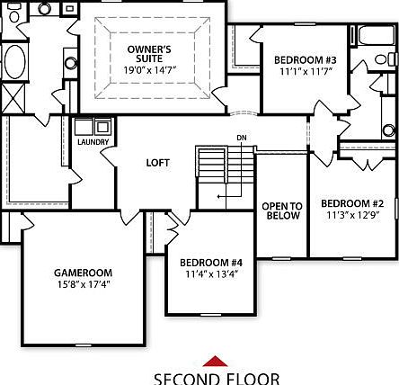 The Barton A model. Enjoy this beautiful Barton home with a floor plan that covers 3,390 square feet. This two-story homes foyer opens to the dining room, great room, study and second floor loft. The exquisite architecture throughout the home creates a distinctive atmosphere. The great room features a fireplace and plenty of natural light. A breakfast nook is conveniently located between the dining room kitchen and directly off of the great room. With plenty of living space, this home offers five bedrooms and three bathrooms. Four of the five bedrooms are located on the second floor along with an oversized game room. The spacious owners suite boasts stunning vaulted ceilings. An attached two-car garage rounds out this plan for convenient parking and storage. This home comes standard with G ranite Countertops and Stainless Steel Appliances.