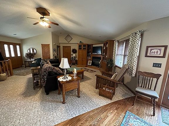Custom built home by Dan Overmohle. Home features vaulted ceiling in living room plus 9 foot ceilings on main and lower levels. Home was once a feature home on the Tour of Homes. The home has seamless siding, gas fireplace, solid core doors, a custom kitchen, appliances and washer/dryer stay. Brand new roof August of 2023. The home also has a Nest thermostat and a Nest doorbell plus a natural gas line to the grill. The 2 car garage is huge with over 700 square feet. If that's not enough...here's the best part. The back yard is fantastic! It features a PVC deck and trees and lots of space. It's a hard to find one of a kind!