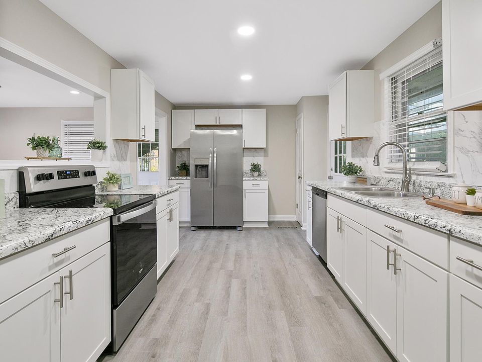 WOW! This beautiful 3-bedroom, 2-bathroom home with a 2-car carport has been renovated and updated! Located on a quiet, dead-end street, this home features all new luxury vinyl plank flooring and all new carpet in the bedrooms, new paint throughout, and renovated bathrooms with a tile shower in the master bathroom! The spacious renovated kitchen features a partially open floor plan and includes new cabinets, new countertops, new stainless steel appliances, and a pantry closet! There is also a new washer and dryer included in a laundry closet off the dining room. Enjoy sipping on a hot cup of coffee while sitting in the screened-in porch or fenced-in backyard! Don't miss the chance to make this house your next home! 12-month lease minimum, 18-month lease preferred. Tenant is responsible for yard maintenance and utilities. Dogs are allowed, subject to approval, and a $200 nonrefundable one-time pet fee along with a rent increase of $25 per month per dog will apply.