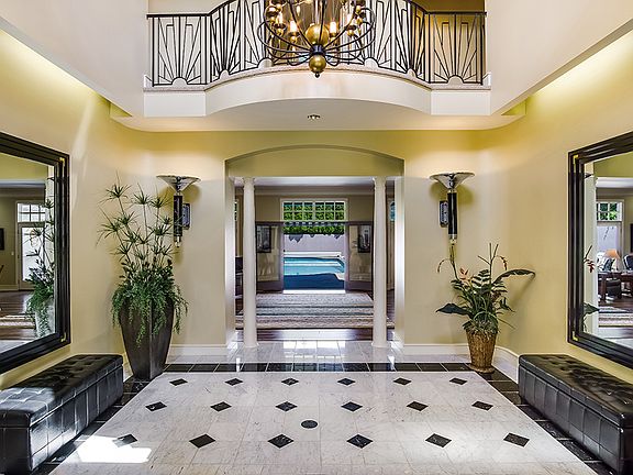 Magnificent Estate boasts lavish features & finishes, high-end amenities throughout, & marvelous attention to detail. Recent improvements included new floors & paint, remote access cameras, & updated security/smart home system. Luxurious master suite encompasses 1000 Sq Ft & contains a gas fireplace, spacious lounge area, balcony overlooking the glistening swimming pool, & the option to bathe in a grand walk-in shower, or the striking marble tile soaking tub. Gourmet kitchen guarantees to impress w/ high-end stainless steel appliances, breakfast bar & nook, a large pantry area, & beverage refrigerator. Entertain guests w/ ease at the spectacular in-ground heated pool w/ waterside bar & outdoor fireplace, or have them over for a private movie theater experience.