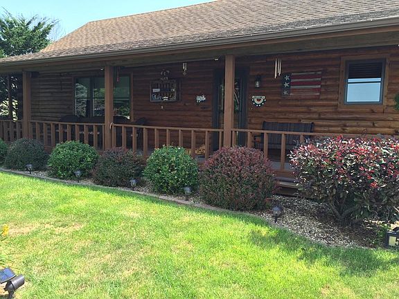 Pristine log home with an inviting 10ft X 40ft covered front porch. This ranch-style floor plan is open from kitchen, dining, & living rooms. There are 2BR's on the main level & possibly 2 additional BR's in the basement. Laundry is in a closet on the main floor. New updates include; new furnace & A/C `09, new water heater `16, new windows `09, & some new flooring. The privacy fenced backyard with a covered deck provides a perfect area to enjoy the fall weather. There is an outside entrance leading into the basement where the 3rd bath is located. 13MO home warranty through HWA is offered!