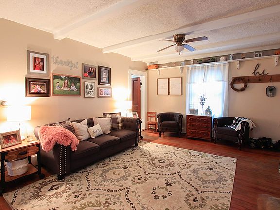 Located on a sidewalk lined street, just beyond the shade of a large tree sits this darling Americana bungalow originally built in 1894. Even in its simplicity, there is such a sense of pride in the white roof peaks, red exterior and covered front porch. Updated and nicely maintained, your living room offers exposed beams painted white to brighten the space. A corner wood-burning fireplace keeps it warm in winter, and the ceiling fans keep things cool in the summer, while the mantle is the perfect place for spring flowers. Wide trim and hardwood floors throughout this home offer hints of its history, while paint colors are fresh and some flooring is new. With two bedrooms, one bathroom, built-in storage, lots of cabinets and an eat-in kitchen, the layout really maximizes the 815 square feet of living space. Low-maintenance landscaping and an easy-to-maintain lot size, exterior features include detached garage and privacy fenced-in backyard. What we also love about this house is walkability! Just a short distance to Kokomo Beach, Foster Park, public transportation, concerts, events, Downtown Kokomo, the Farmer's Market, trails, bike rentals, boutiques, pubs & local restaurants, we know you will love it too!