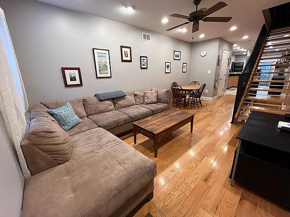 Welcome to this inviting 2-bedroom, 2.5-bathroom rental in the heart of Canton. The fully finished basement adds versatility to the property with two additional rooms and a full bathroom, ideal for guests or a home office. With hardwood floors throughout, this home exudes warmth and elegance. The main level features a practical half bathroom, and the well-appointed kitchen opens to a living area with high ceilings, creating a comfortable space for everyday living. Convenient off-street parking is provided by a parking pad. Step outside to enjoy a two-tiered back deck and rooftop deck, offering impressive city views. Perfectly situated just steps away from Patterson Park, and with easy walking access to local restaurants and bars, this residence provides the ideal blend of urban convenience and a cozy neighborhood feel. Perfect for families or roommates! Pets allowed on a case by case basis with additional deposit. Ring security system included with optional professional monitoring. Utilities not included. Lease term of 1 year or longer. Discounts for lease terms longer than 2 years. No smoking allowed. Pets considered on a case by case basis with additional deposit. Utilities not included and are the responsibility of the tenant.