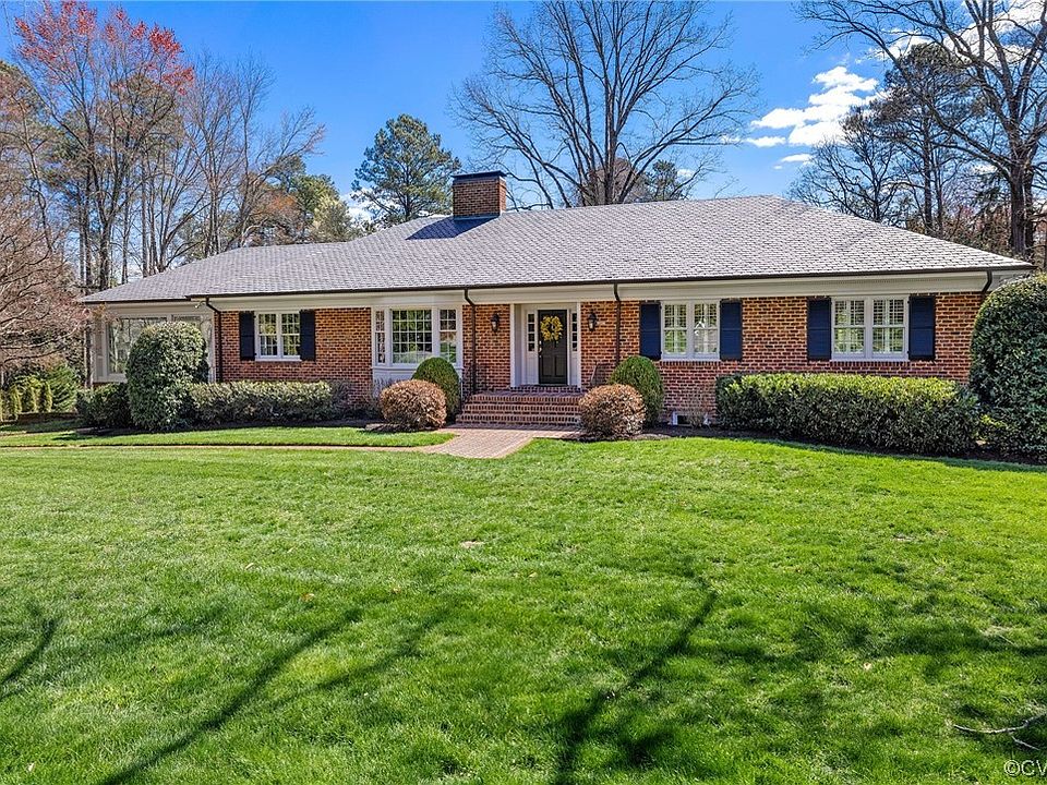 This stunning all brick, one level home with full walk-out basement, slate roof, situated on 1+ acre, has ALL the bells & whistles! The welcoming foyer opens to the living & dining rooms, featuring hardwood floors, beautiful mouldings & gas fireplace. The kitchen, renovated by Custom Kitchens, features both Wolf & Sub-Zero appliances, an island & lots of pantry space. The kitchen is open to the family room with hidden bar area & gas fireplace! Enjoy entertaining in the large sun room w/slate floor, and floor to ceiling glass on three sides! The owners bed and bath has been updated with a timeless palette, walk-in closet and a deck over looking your fenced in private backyard. There are two other bedrooms and full bathrooms. The walk-out basement has a recreation room, w/gas fireplace, walk-up wet bar, beverage fridge and a walk-in wine cellar. There is an additional bedroom with full bathroom, large laundry room and tons of storage including a cedar closet. The yard is landscaped beautifully and features a large brick herringbone terrace and a heated saltwater gunite pool. Sit back and relax by the pool, or play a few rounds of golf at CCV (membership required).