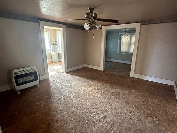 Rural America, Home is 1434 square feet of space, Including A bedroom on the main floor and bathroom. the 2nd floor has 3 Large bedrooms. The home has grand entrance with a fireplace and 2 windows originals to the home with etched glass. enjoy this 1940's home with galley kitchen, laundry room, exterior exit with a covered back patio and rock built exterior kitchen. Fenced in yard. and a detached 2 car garage. The price of the Home is due to the home needing a Roof, electrical and flooring.