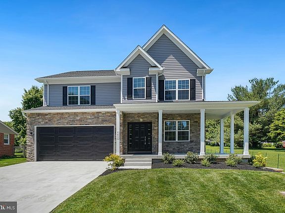 New construction home - Beautiful and Move-In ready! It's situated on just over a 1/3 acre lot featuring an elegant stone front, inviting wrap around front porch, 4 bedrooms upstairs, a 5th guest bedroom or office in the basement and 3.5 baths. Quality built by All-In Home Builders, LLC. The large living room has lots of natural light and room for a dining table. The center island kitchen has soft-close cabinets, quartz countertops and stainless-steel appliances including a French door refrigerator, built-in microwave and smooth surface range. The breakfast area has plenty of space and a great view of the backyard from the sliding glass door. The family room off the kitchen is spacious and bright. See the beautiful and durable LVP floors throughout the main level. A stylish powder room with pedestal sink is centrally located for convenient access from the living room, kitchen, family room or 2 car garage. Upstairs you’ll find the primary bedroom with walk-in closet, linen closet and spa bath with double vanity, soaking tub, and spacious separate shower. Note the 3 additional large bedrooms with good sized closets including one with a walk-in, the hall bath with double vanity and tub/shower, the upstairs laundry room, and the linen closet. Downstairs is the 5th bedroom with its own closet and outside entrance with walkup stairs. The 3rd full bath with tub/shower is right next to the bedroom. The spacious finished recreation room and the large unfinished utility/storage room complete the lower level. Additional features include: Recessed lighting; pendant lights and chandelier in the kitchen; Quartz countertops; luxury vinyl plank (LVP) floors on the main level, ceramic tile floors in the upstairs baths; carpet in the upper and lower levels; ceiling fans with remote controls; zoned heat and air; front porch; large lot 0.358 ac; plenty of parking including alley access; radon remediation; sump pump; fire sprinkler system; finished walkup basement; buried downspouts, 9ft ceilings on the main and lower levels. Woodsboro is home to Woodsboro Park, a 102 acre place of beauty and recreation. It is also home to the Woodsboro/New Midway Recreation Council. Here you will find playgrounds, fishing for trout in spring, sledding in the winter, and Frisbee golf year-round. Small town living just 10 miles from downtown Frederick. You can have it all!