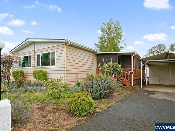 Beautiful, spacious home in 55+ park. MOVE IN READY! New Roof 2022. Jacuzzi shower in 2022. Vinyl windows. Large covered front & back decks with privacy screen for you and pets. Lg. Trane heat pump for A/C. NEW 50 gal HWH, interior paint & disposal 2023. Garden Tub. Updated plumbing. Appl Incl. Fenced yard with garden boxes, small shop with power. Storage/workshop/tool shed. Hard flooring. Must obtain park approval.