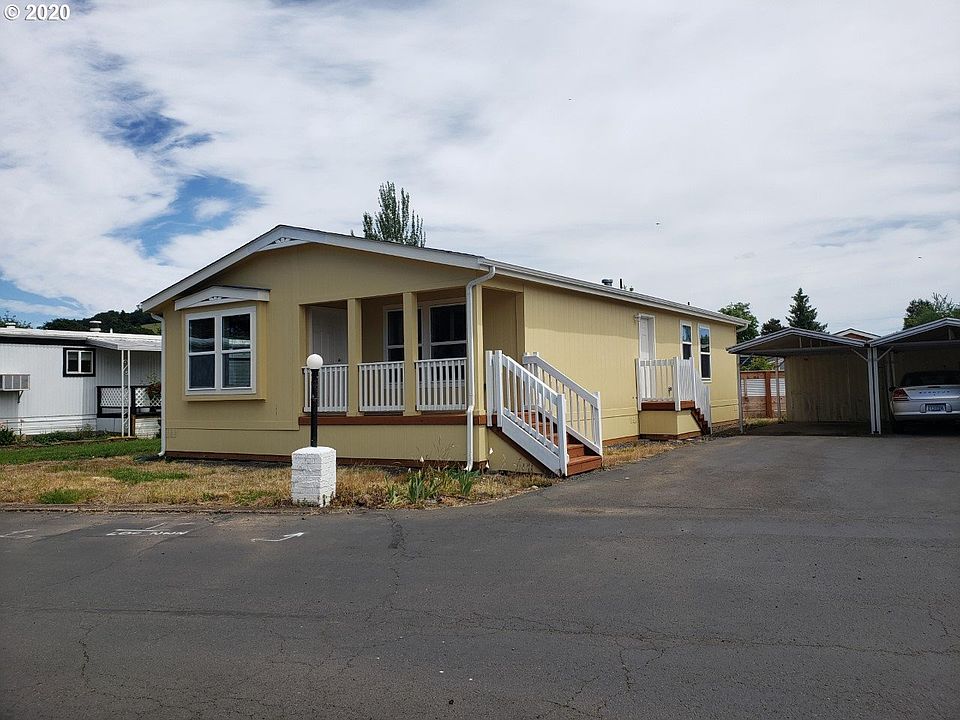 Customized & stylish dbl-wide manuf. home in a 55 and older park in Sheridan-under new management providing a safe & beautiful senior community. Harbor View by Palm Harbor, so nicely constructed. 27x49.4 (1236sf) 3/2, on a large 53x80 lot use of a carport & storage and room in the driveway for a second car, lots of light in the huge living room, vaults & FA furnace. Upgrades: Covered porch, raised living room window, carpet upgrade, walk-in shower, cabinets, & all upgraded appliances included.