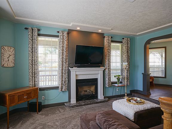 VICTORIAN CHARM AND A WHOLE LOT MORE! The wrap-around covered porch beckons you to sit and enjoy life while this home enhances any lifestyle with a formal LR and gas fireplace, Office + 3 BRs and 3 Baths, DR + Nook, island Kitchen with lower cabinet pull-outs and eating bar, Sunroom/FR, Recreation Room, work area addition to back of garage, 3rd BR with a secret space for children to play, finished attic storage, the cutest yard storage building ever, a tiny garden playhouse, raised garden beds, and RV parking.