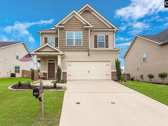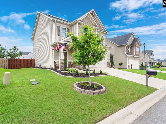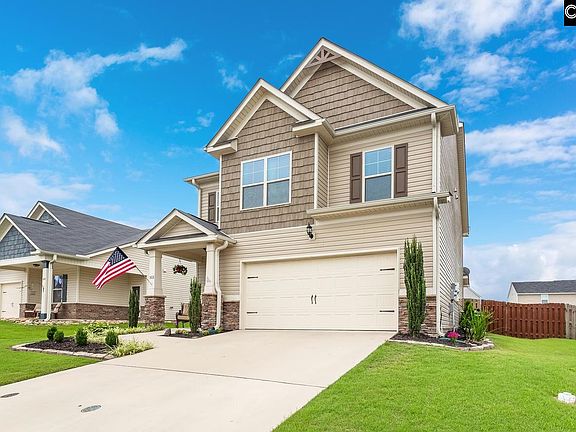 This immaculate, well-maintained Lexington craftsman style home features numerous upgrades! Stone accents and front porch columns lead you to the 2 story foyer with open staircase design, accented with 9 light chandelier. Hardwoods and archways lead you to the family room with beautiful coffered ceilings and a gas FP. More features include a large kitchen with peninsula bar and additional eat in breakfast area, SS appliances, recessed lighting, crown molding, gas range, granite counter tops & tile backsplash, just a few upgrades to mention. The large master suite & guest bedrooms all have vaulted ceilings. Granite is featured in all bathrooms as well as double vanity in the master. The upgrades go on...Thermopane low E windows, solar panels for lower energy costs and Wifi Smart Irrigation System, fenced back yard, professional landscaping, patio & full gutters. Close to I-20, restaurants and shopping. Award winning Lexington One schools. 12 month home warranty offered with acceptable offer. Make your appointment TODAY!