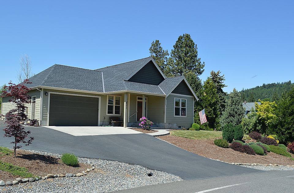 Built in 2014, this beautiful 3-bedroom, 2 bath craftsman home features an open floorplan with lots of natural light, east facing views of Hospital hill, a spacious low maintenance landscaped yard and asphalt paved driveway. The interior has a built-in gas fireplace that provides extra warmth in the winter while the AC unit keeps the home cool in the summer. Hardwood floors throughout the living room, dining, kitchen, front bedroom, halls and master bedroom. A spacious kitchen with KitchenAid appliances featuring a slide in gas range. Custom cabinets with quartz counter tops and lots of seating at the breakfast bar and butcher block island. The back patio includes a retractable awning and walkway to the garden shed. The master bath is finished with a fully tiled shower and floor with a generously sized walk-in closet. Conveniently located near schools, playgrounds, restaurants as well as the future proposed site of the new Community pool.