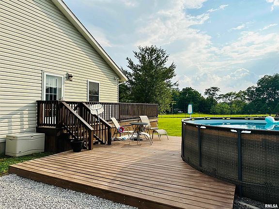 Move in ready 4-5 bedroom home in the Lick Creek School District sitting on 4 acres. The house features a beautiful kitchen with plenty of counter and cabinet space, Living and dining area with access to the large deck. The main floor also has a master bedroom, large second bedroom and laundry. The finished basement has two bedrooms and an additional room that can be used as a bedroom or office, common area, full bathroom and a large storage room. The pole barn is approximately 1440 square feet with a couple stalls. There is also a bathroom in the pole barn. Camper hookup on the side. The pool and floating deck are great for Summer days. Geothermal. Call today to set up a showing!