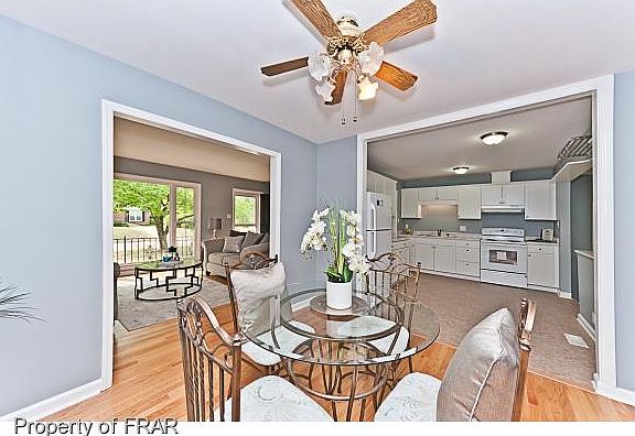 -Nicely updated home with beautifully refinished real hardwood flooring through most of the home, tile in the baths,and sunroom.New roof,kitchen cabinets, countertops, stove, hood, sink, kitchen flooring HVAC system and light fixtures. You won't have to spend money on your home for a very long time. Conveniently located and within minutes to Ft. Bragg via Highway 295. All the shopping you can need is near. Lowe's, Wal-Mart, Food Lion, restaurants & fast food.